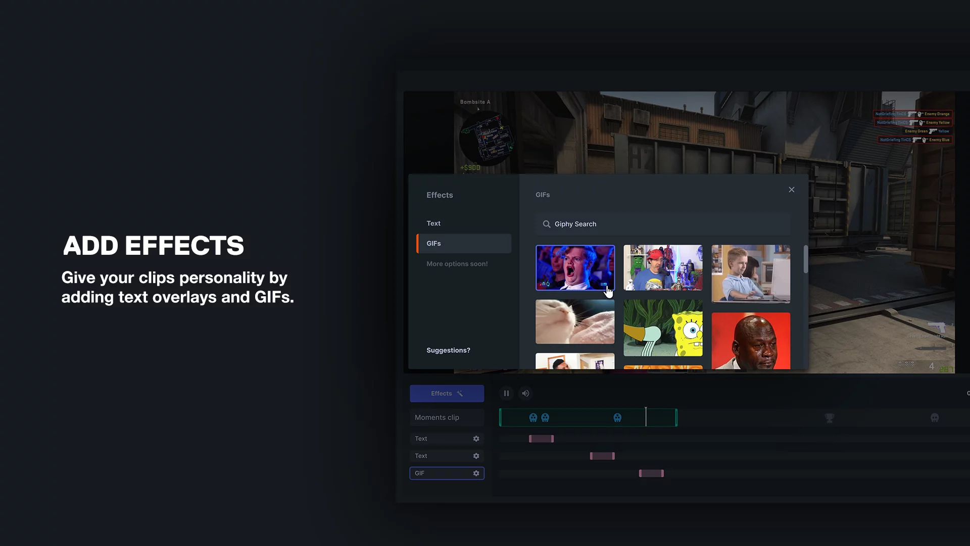 - Szerkesztés – A játék végeztével a gamer könnyedén áttekintheti és rendszerezheti az összes rögzített fájlt a Moments Galériában. Az alkalmazáson belüli fejlett videószerkesztő lehetővé teszi a minőségvesztés nélküli szerkesztést a kezdő és a befejező táblákon, valamint hozzáadhatunk videóeffekteket, például feliratokat és GIF-eket a Giphy-ből. Ezen felül a játékosok mindig visszatérhetnek az eredetileg létrehozott kliphez.