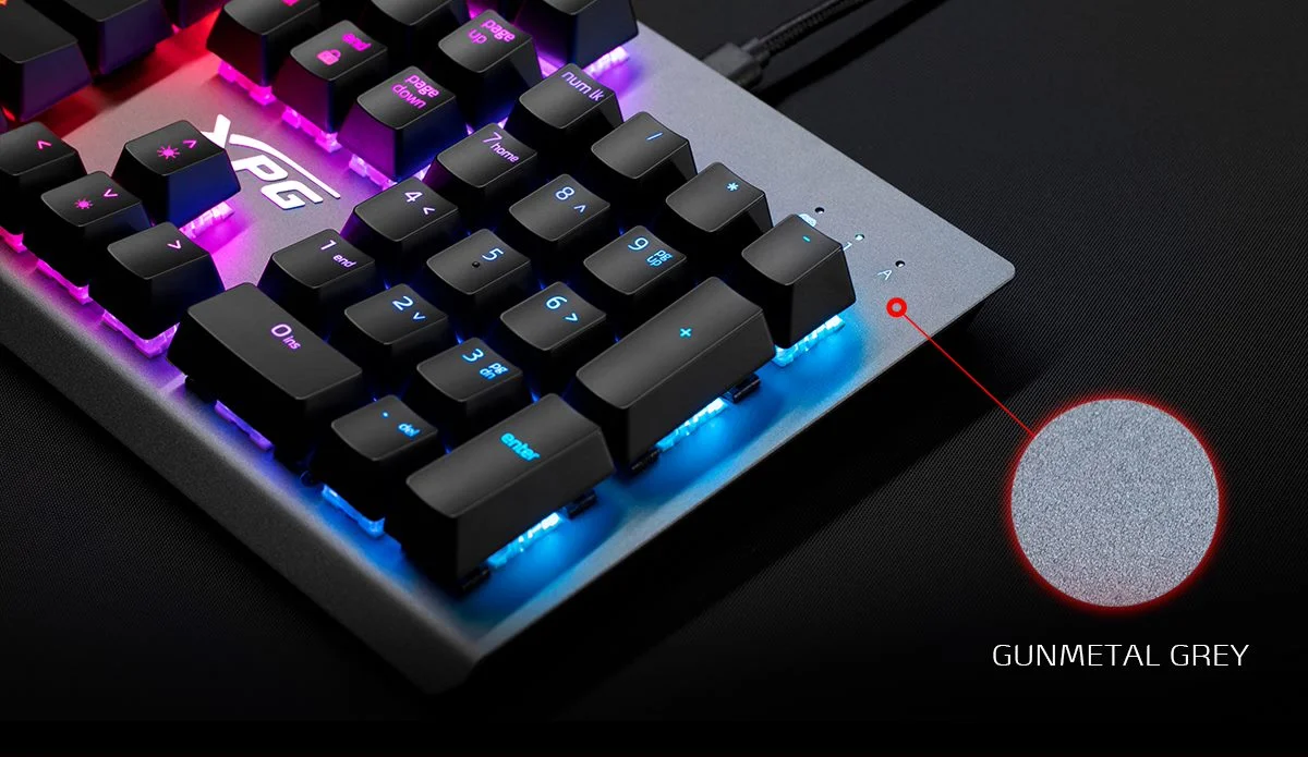 Az XPG MAGE időtlen és letisztult kialakítással rendelkezik, a billentyűzet vázát pedig gunmetal szürke felületű, kiváló minőségű alumíniumból hozták létre. A billentyűzet ráadásul támogatja a gombonkénti RGB világítást a káprázatos fényeffektek létrehozása érdekében. Az XPG MAGE ezenkívül kompatibilis az XPG PRIME szoftverrel is, amely lehetővé teszi a felhasználók számára a beállítások, a makrók és az egyedi RGB effektek testreszabását egyetlen központi felületen.