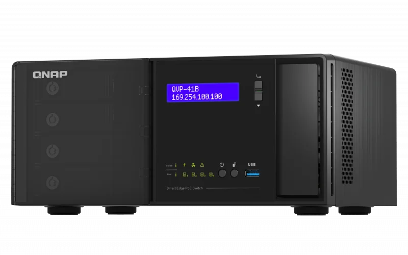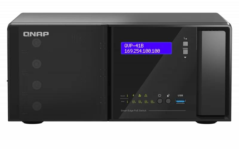 A QNAP QVP-41B a PoE switch-csek képességeit egyesíti az intelligens felügyelettel és a nagy sebességű csatlakozással