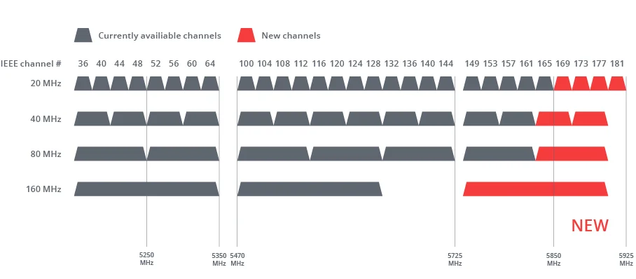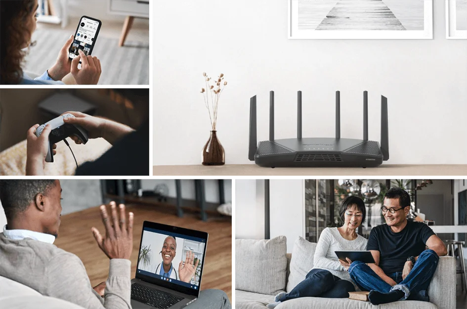 A háromsávos technológia a Smart Connect megoldással együttműködve optimalizálja az eszközök elosztását, kiküszöbölve a szűk keresztmetszeteket az adatátvitel során. Az újonnan engedélyezett 5,9 GHz-es spektrummal való kompatibilitás feloldja a nem DFS-csatornákat 80 és 160 Hz-en a kombinált 6,6 Gb/s-os vezeték nélküli adatátvitel2 , az egyidejű kapcsolatok magasabb száma és gyorsabb VPN-szerverteljesítmény elérése érdekében.